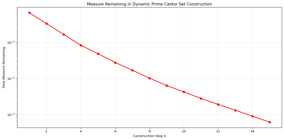 Alternative Constructions: What if different prime-based rules were used? For example, removing intervals indexed by composite numbers, or using \(p_k^2\) subdivisions, or incorporating twin primes?