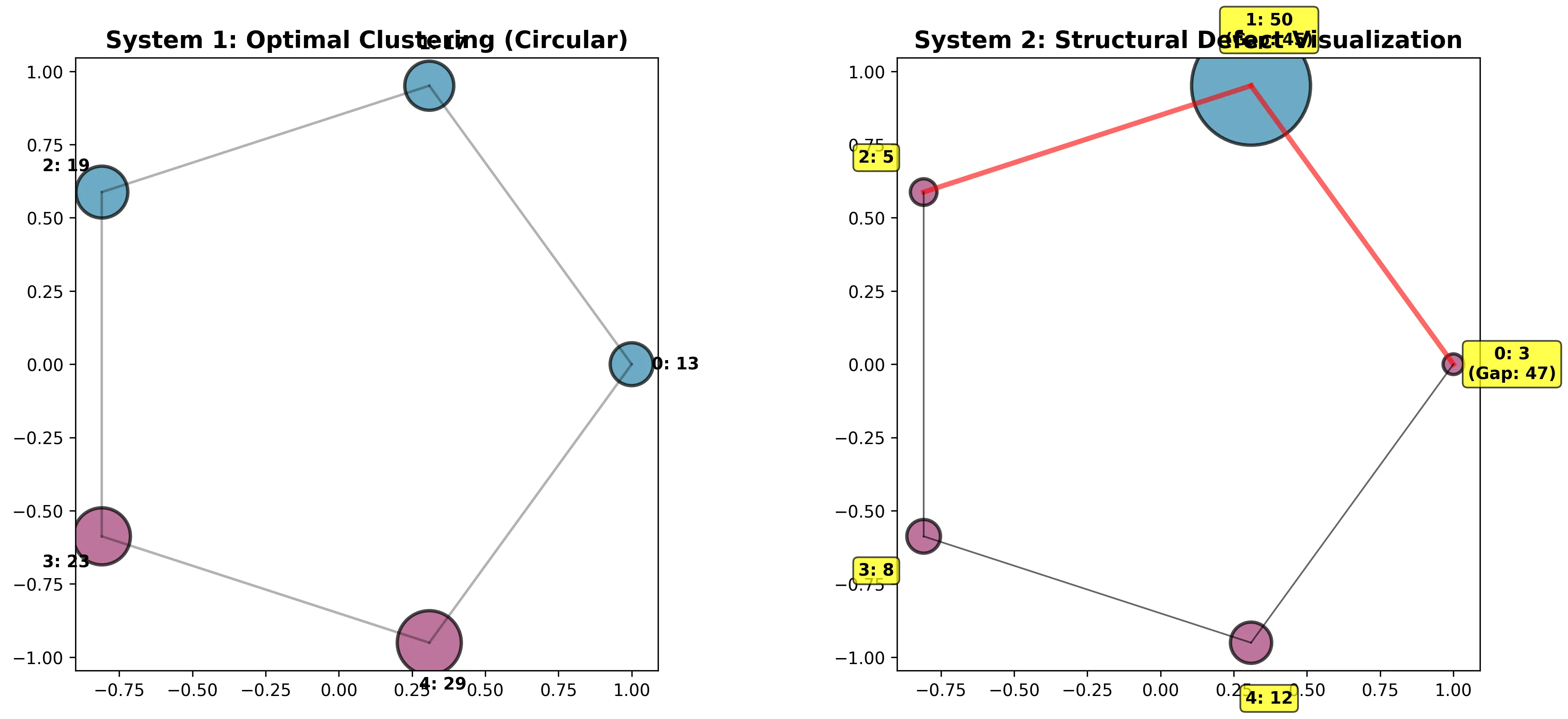 The analysis of the 5-node systems demonstrated that DEFEKT can distinguish between: - Well-behaved systems that have naturally hit the structural floor (Variance 2.25, Z-score -3.19) - Problematic systems fighting structural defects (Variance 272.25, Actual/Bound Ratio 0.986)