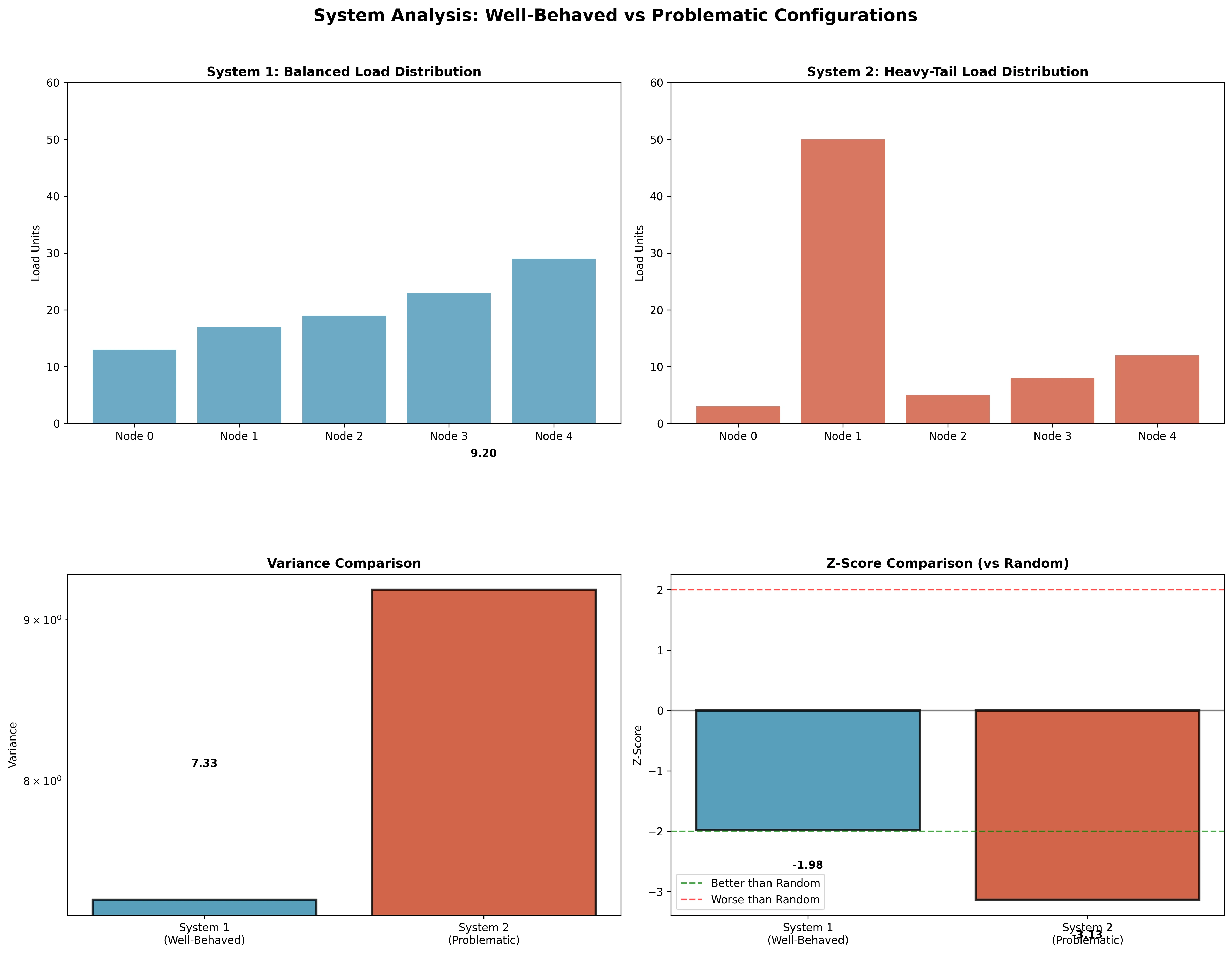 Our analysis demonstrates that both systems are actually well-optimized relative to their structural constraints. System 2’s “poor” performance is mathematically unavoidable given the extreme load disparity.